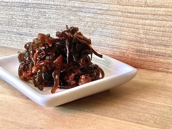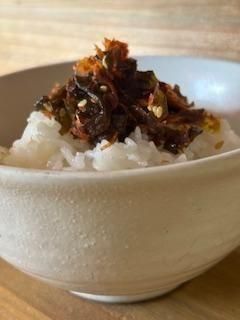 短冊切りの昆布にうるめイワシの削り節と胡麻を加えた